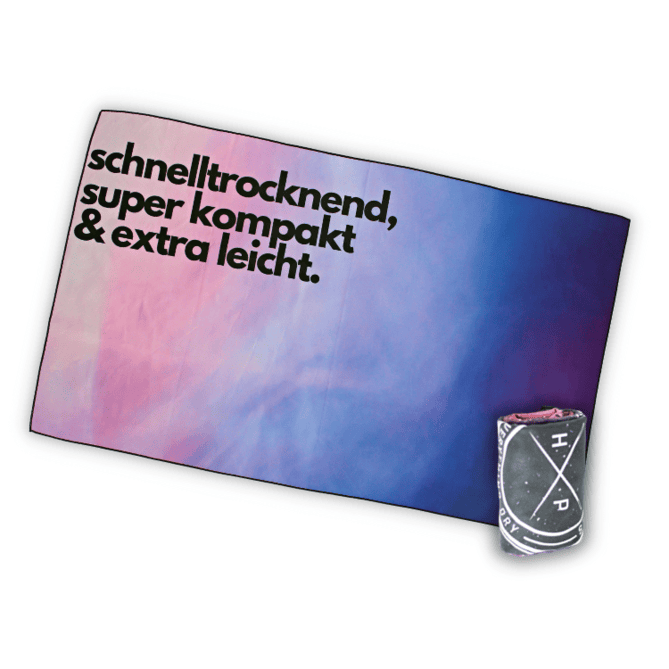 Unser EasyDry SPORT sticht nicht nur durch die herausragende Druckqualität hervor. Es ist ultra leicht, schnelltrocknend und kompakt. Somit ist es der perfekte Begleiter für Sport und Reisen. Auf Wunsch gibt es unsern Topseller auch mit einer passenden Gummibanderole um das Tuch noch leichter verstauen oder mitnehmen zu können.